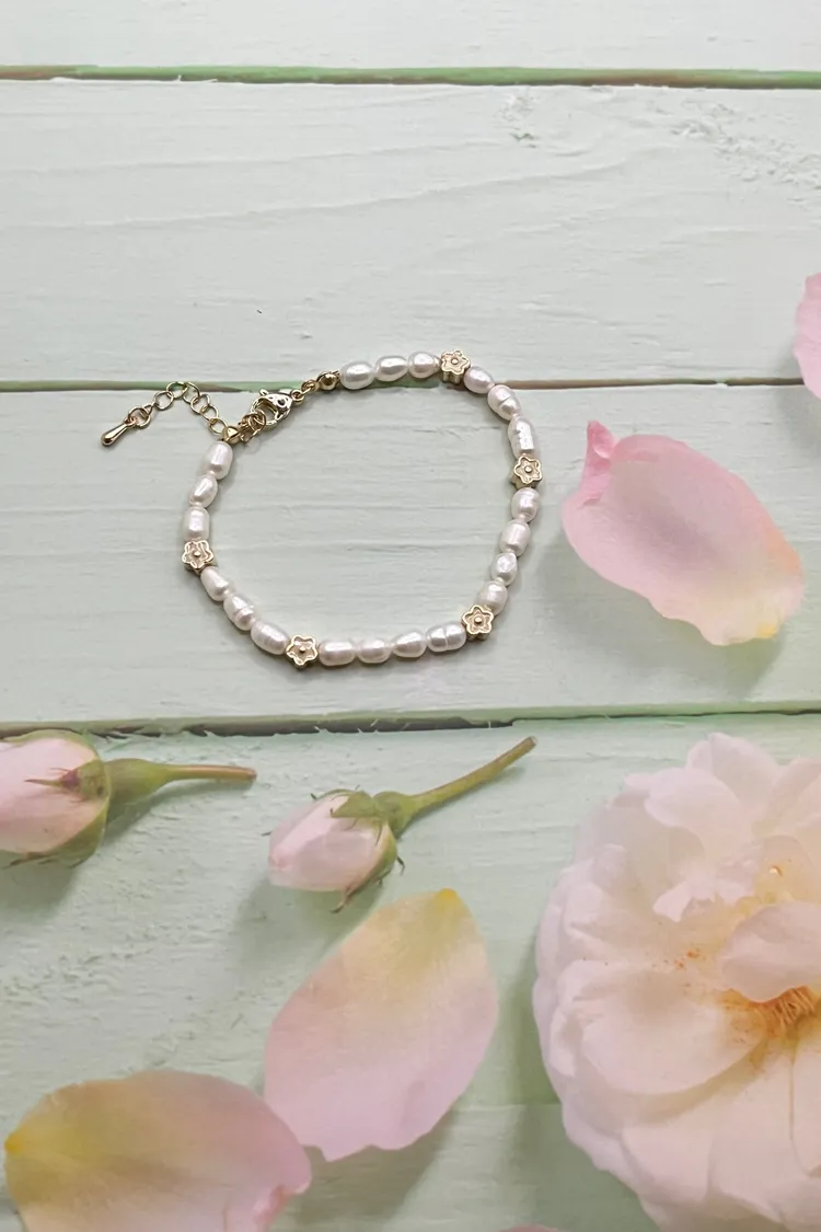 本商品為淡水珍珠,所以色澤、形狀不會很一致,搭配小花點綴,典雅中帶點可愛~~~
