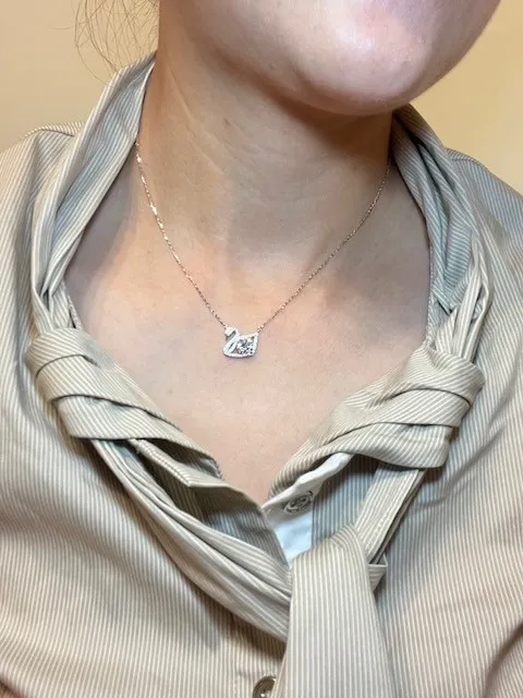 這款【一克拉天鵝莫桑鑽項鍊】,以精緻切割的莫桑鑽為核心,折射出媲美鑽石的璀璨光采。