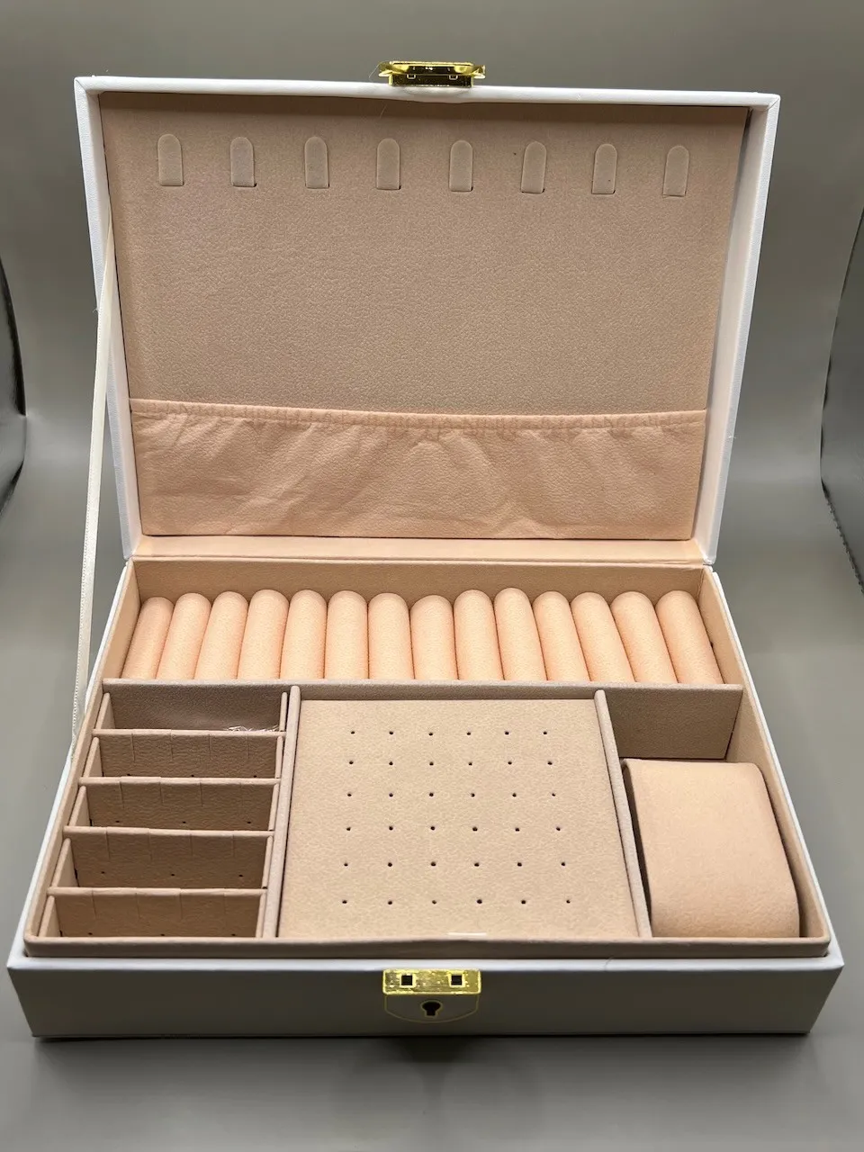 材質是皮革,可以將項鍊、手鍊、耳環都收納在裡面,是自己專屬的首飾盒~~💕
